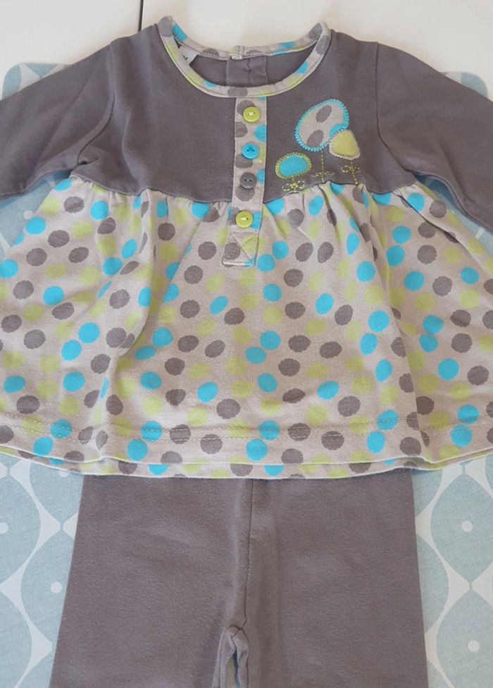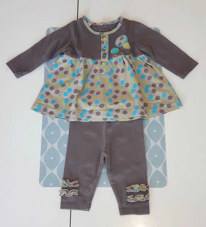 Ensemble gris, bleu, vert pomme avec haut ML + legging assorti - Taille 3 mois
