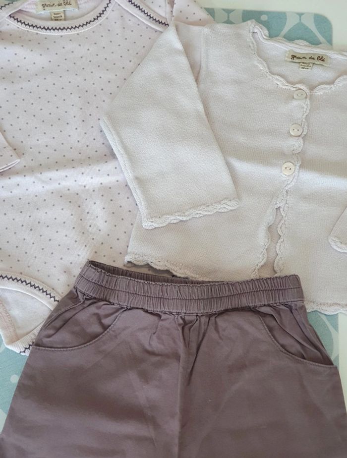 Ensemble Grain de Blé avec body ML, gilet rose et pantalon marron - Taille 3 mois