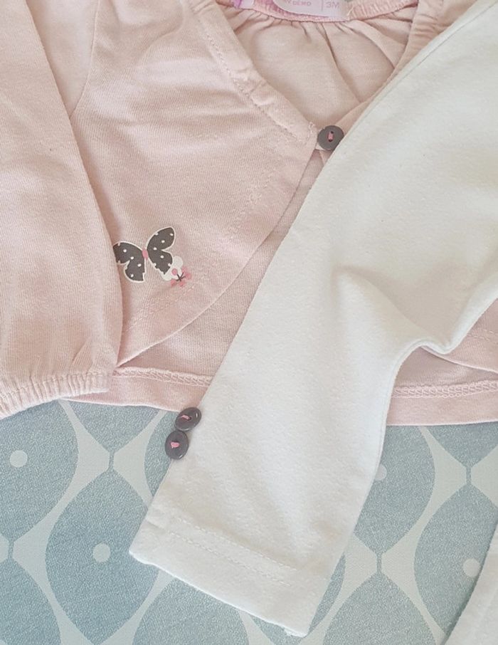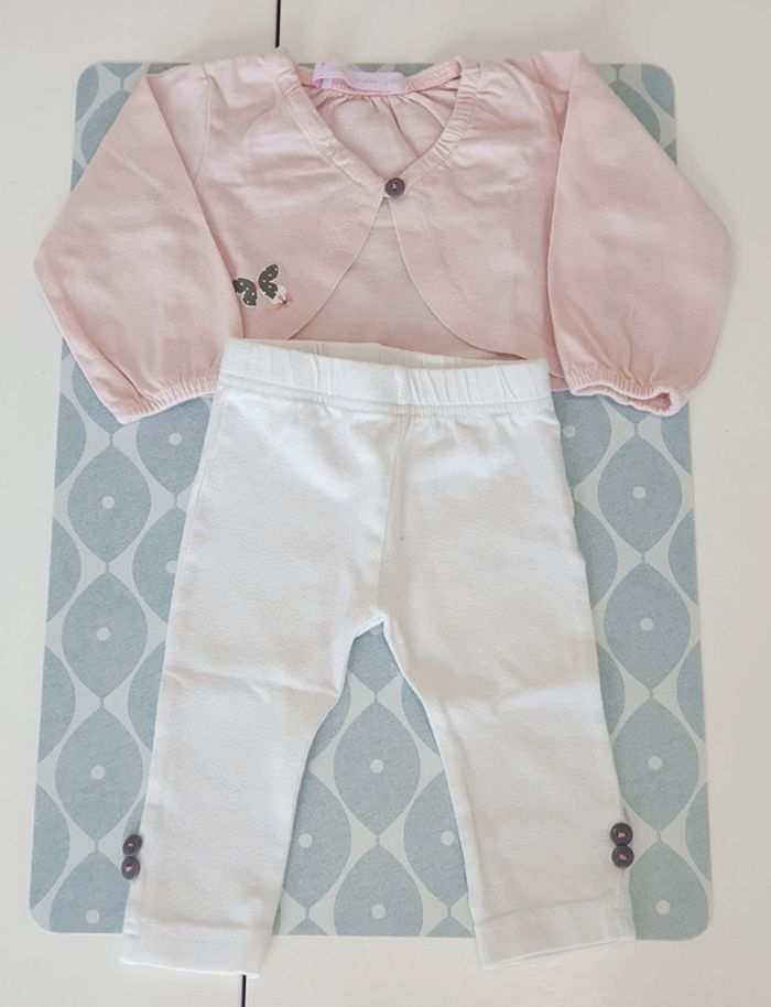 Ensemble Gemo avec bolero rose et legging blanc - Taille 3 mois