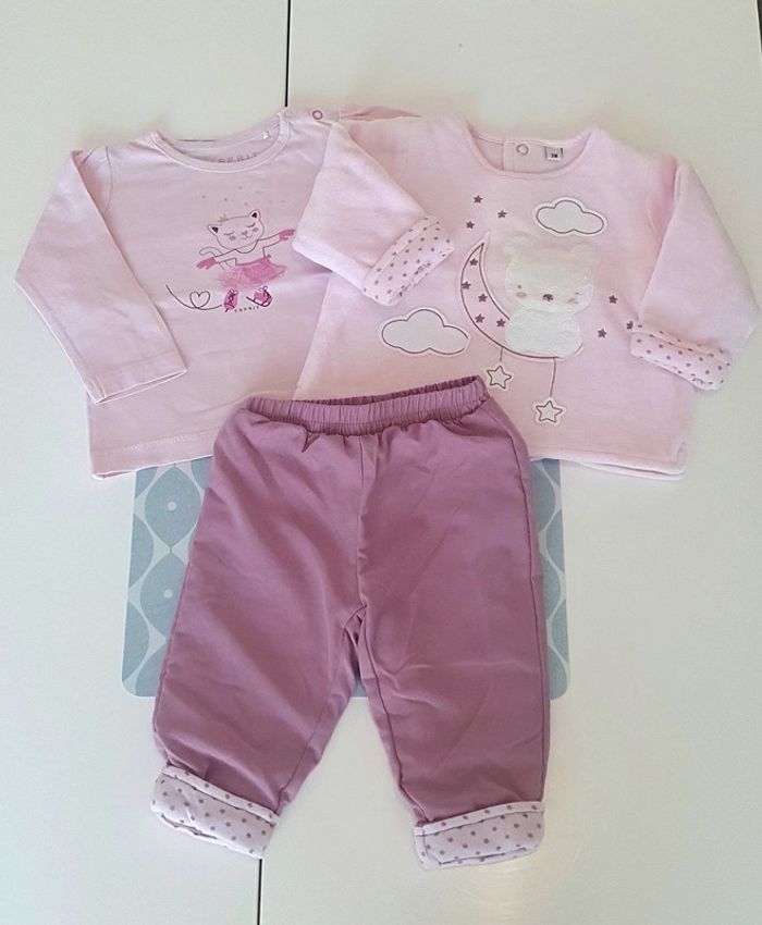 Ensemble avec haut ML Esprit, pantalon violet et pull en velours epais - Taille 3 mois