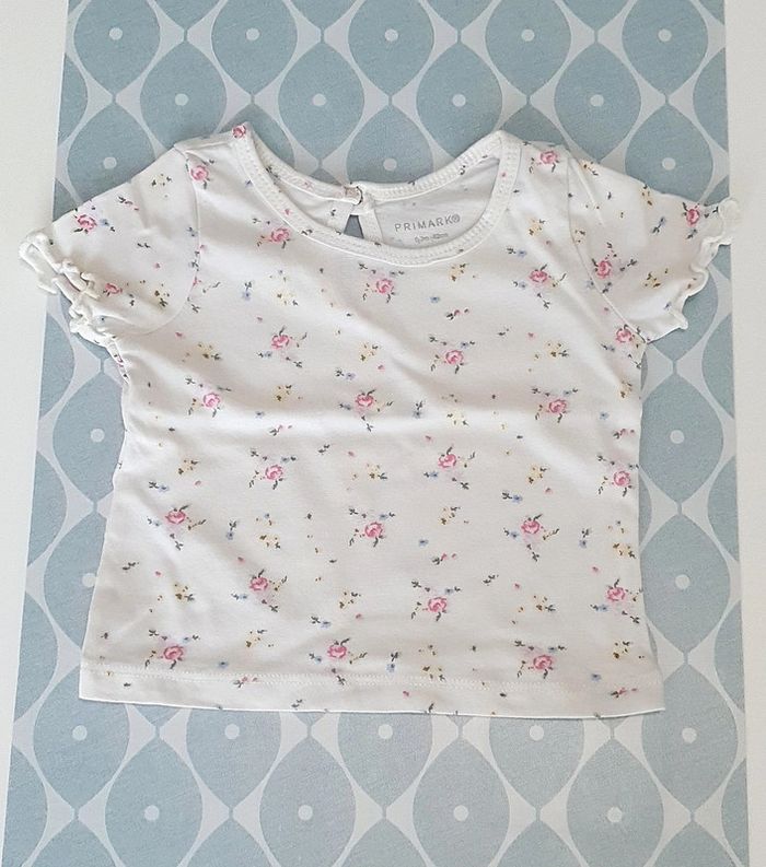 Ensemble avec robe en jeans rose pale et t-shirt crème/rose Primark - Taille 3 mois (62 cm)