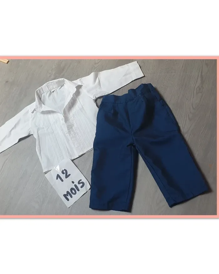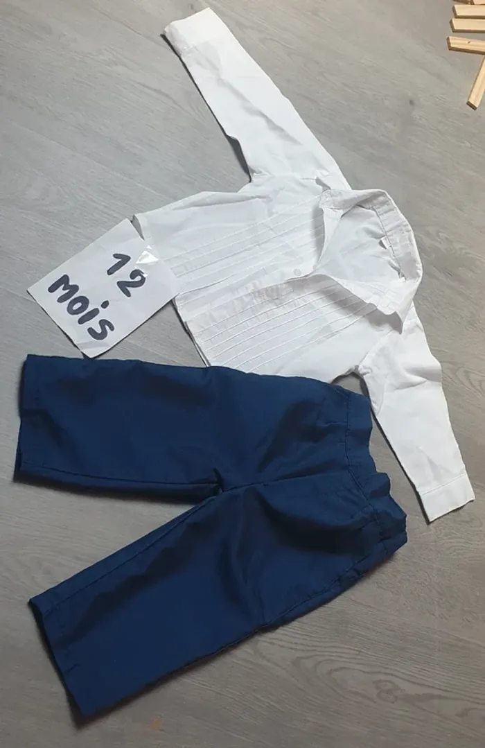 Ensemble chemise blanche manches longues cérémonie pantalon bleu marine #ann010203garçondixhuitmois Tâche sur chemise voir photo