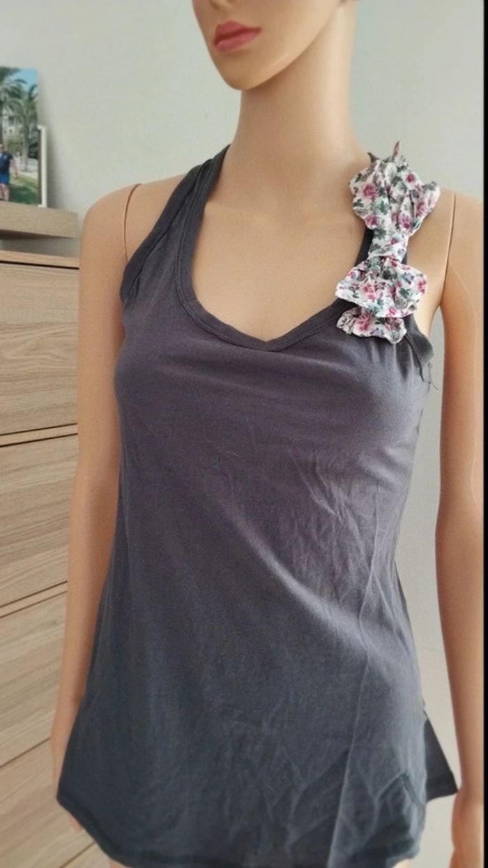 Débardeur gris avec noeud liberty taille s/m femme coton