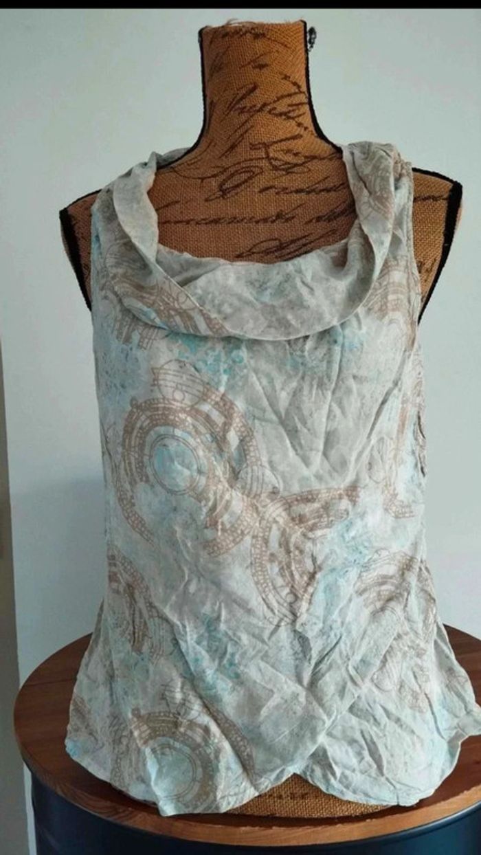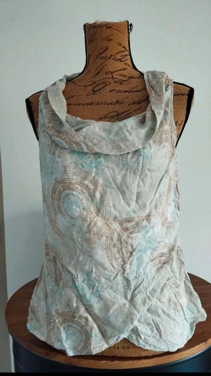Haut  top débardeur bleu  marron  beige  avec  motifs  taille  38 - photo numéro 9