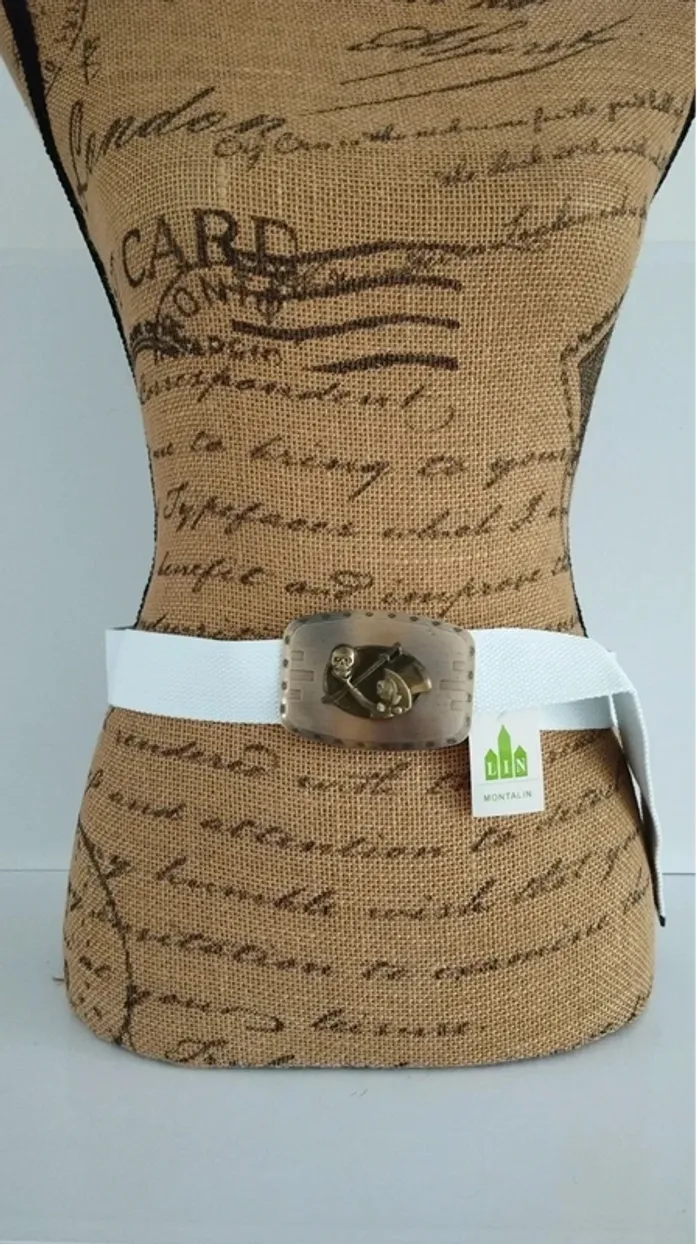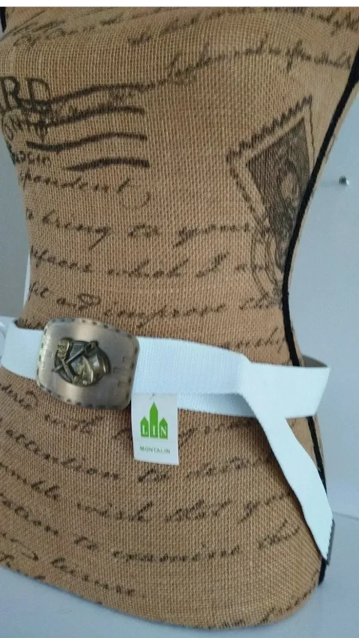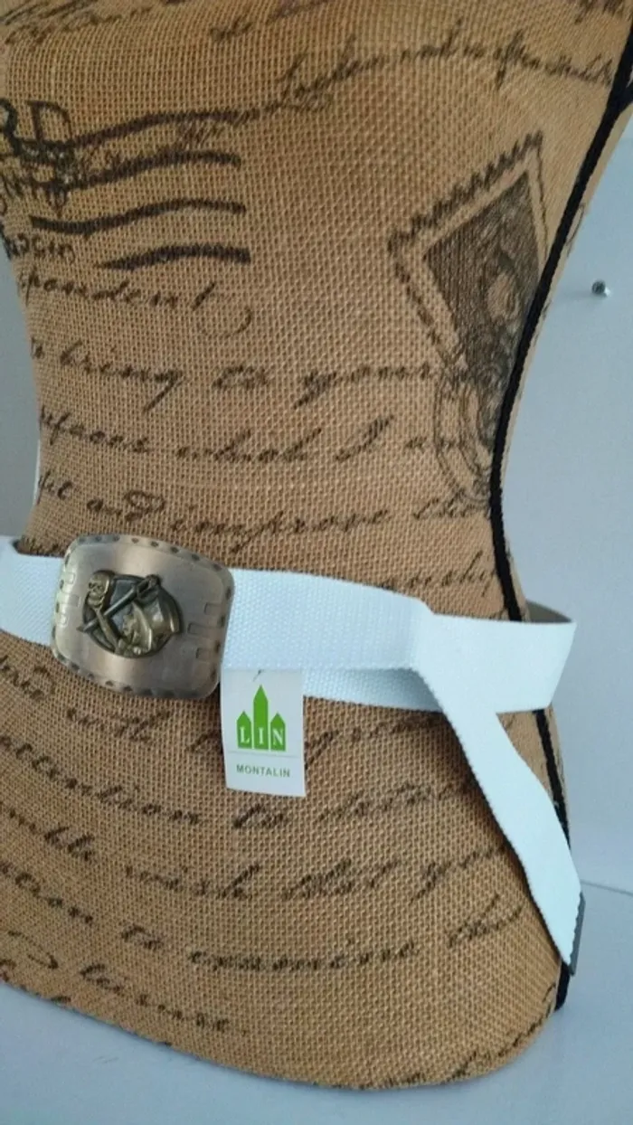 Ceinture blanche boucle dorée ajustable avec motif - photo numéro 1