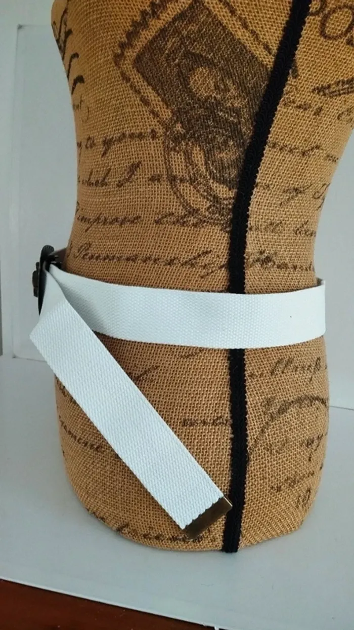 Ceinture blanche boucle dorée ajustable avec motif - photo numéro 8
