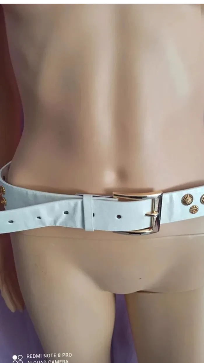 Ceinture blanche clous dore Longueur totale 100 cm Largeur 4 cm