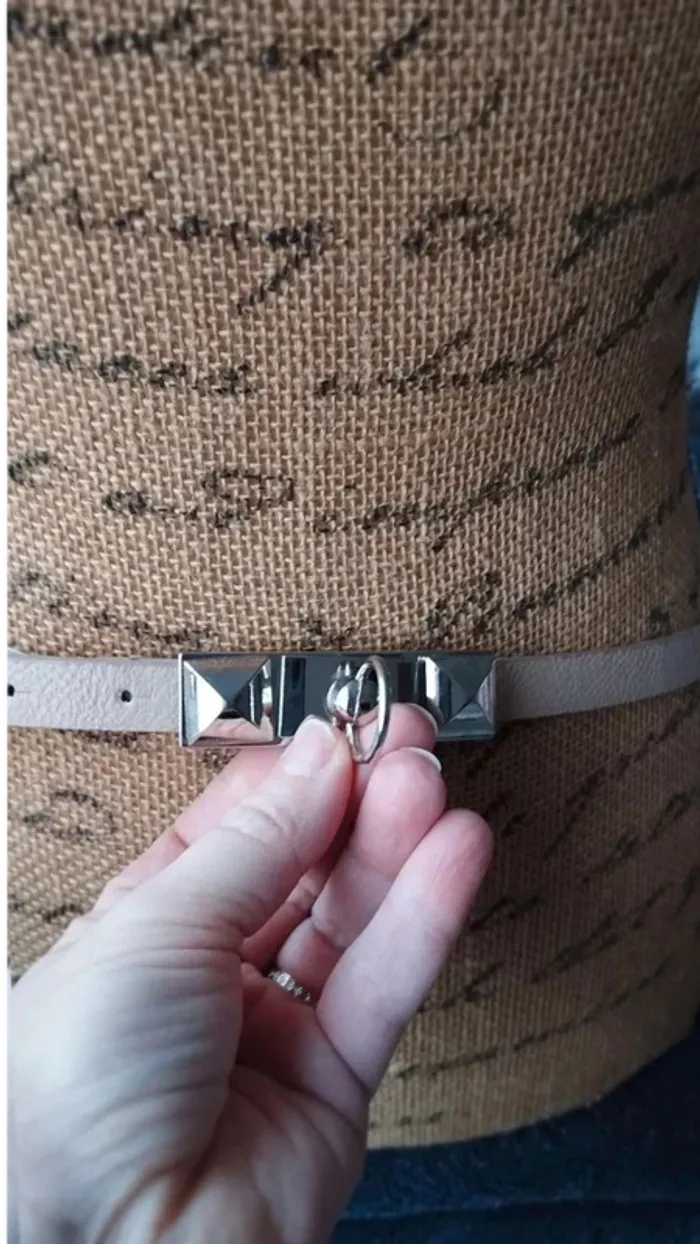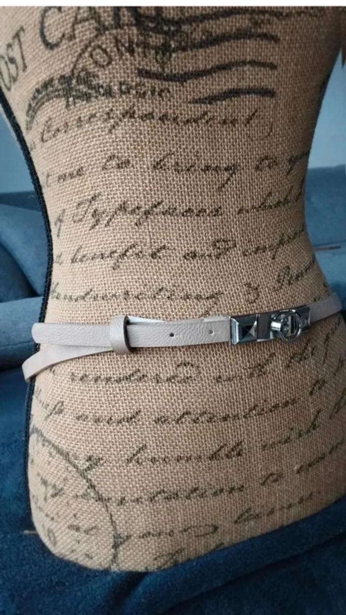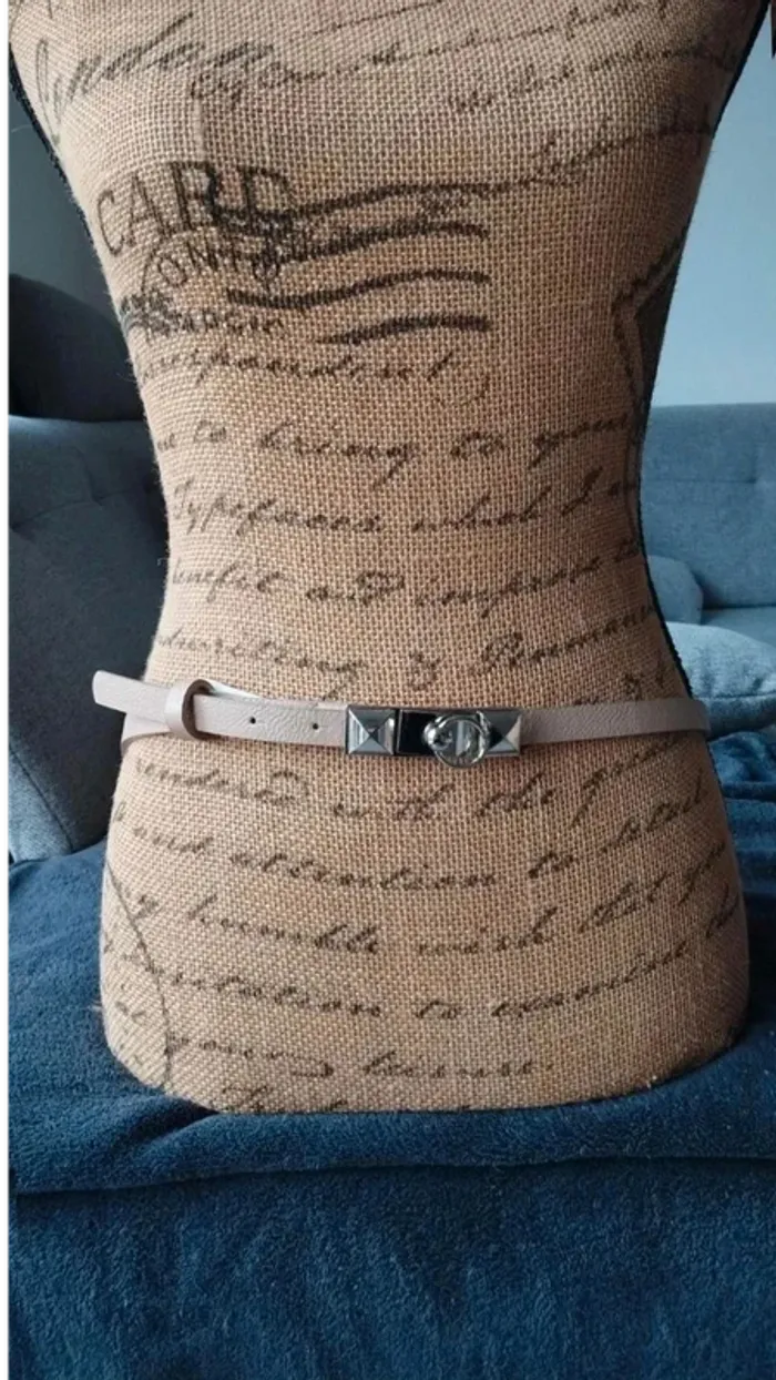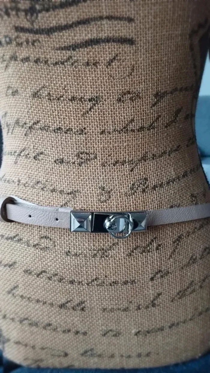 Ceinture beige boucle  rectangulaire argenté  85  cm - photo numéro 10