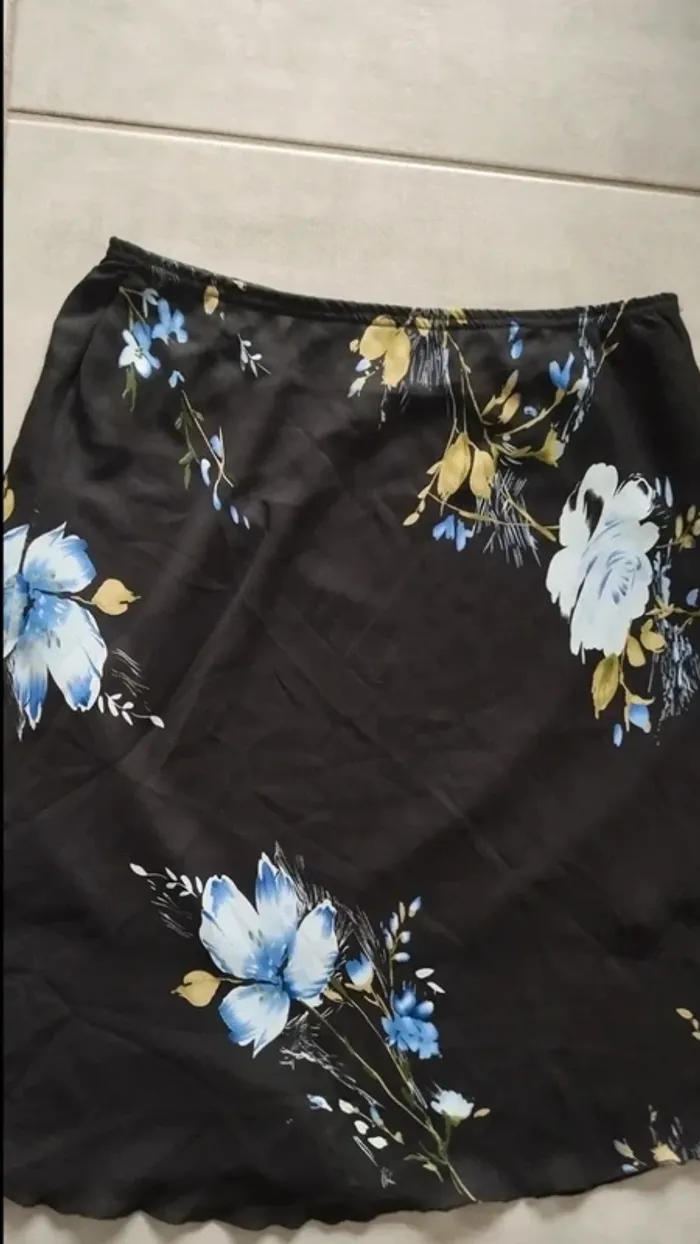 Jupe mi longue noir avec fleurs taille 42/44 - photo numéro 1