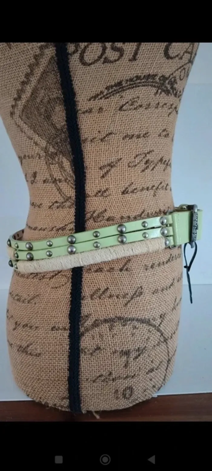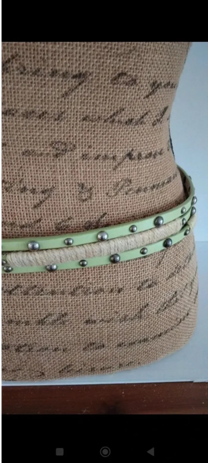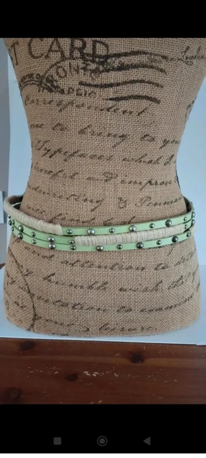Ceinture vert clair trois rangs avec ficelles femme 85 cm - photo numéro 7