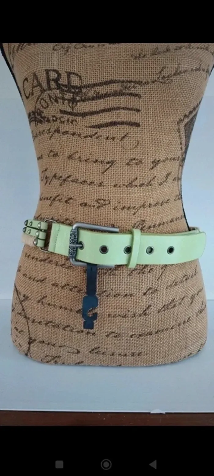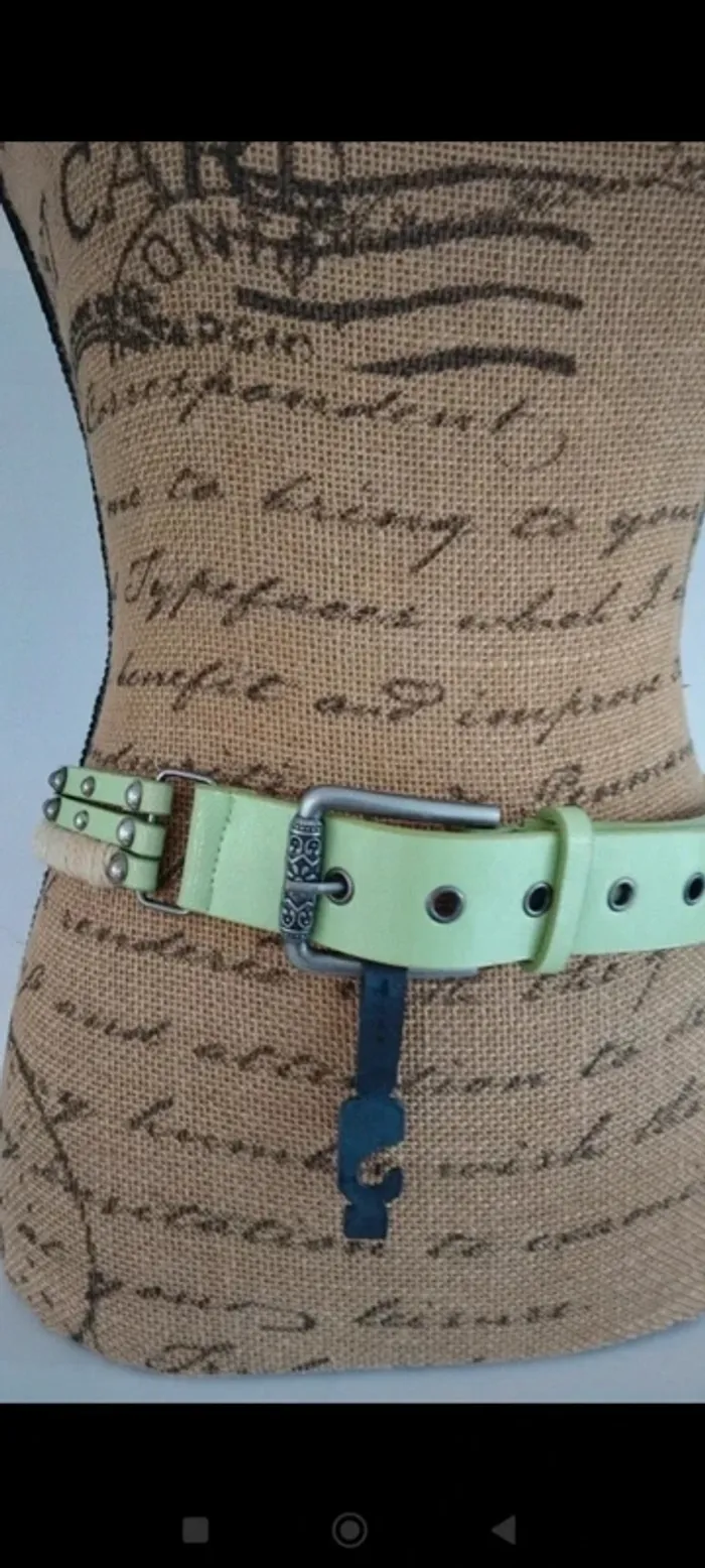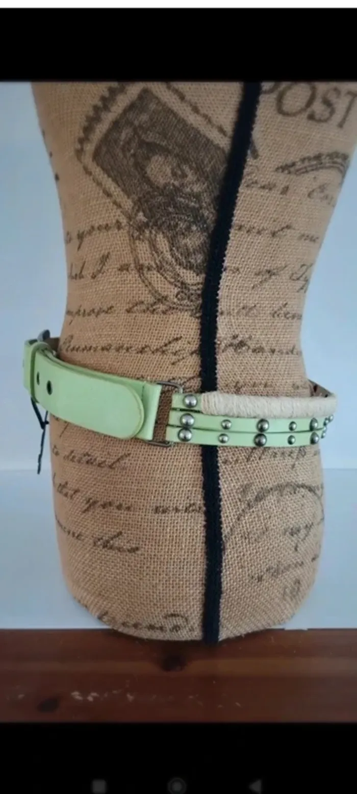 Ceinture vert clair trois rangs avec ficelles femme 85 cm - photo numéro 7