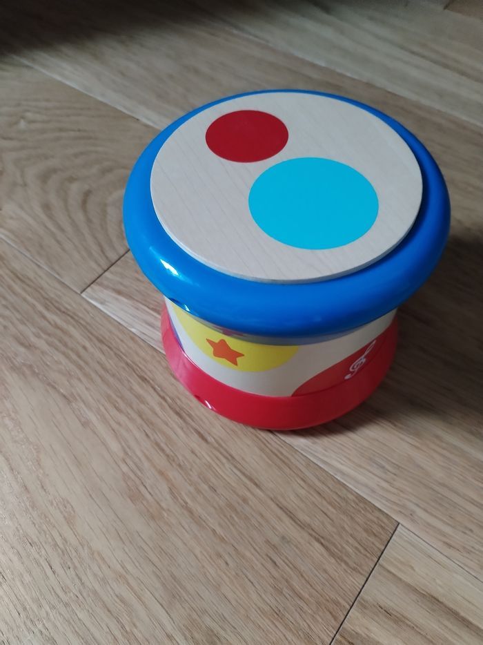 Aidez votre enfant à faire ses premières explorations musicales avec ce tambour à effets lumineux ! Grâce à cet attrayant tambour de bébé turquoise et corail qui roule, votre enfant peut apprécier la musique et le plaisir du rythme dès son plus jeune âge.Lorsqu’il tape sur le tambour, celui-ci émet des sons et des lumières au rythme de la musique de fond. Votre enfant peut aussi faire rouler le tambour au sol pour découvrir de nouveaux sons et rythmes, tout en le suivant pour développer sa motricité globale.Il encourage l’éveil musical. Attention le couvercle pour les piles ne tient plus, il tient avec du scotch.