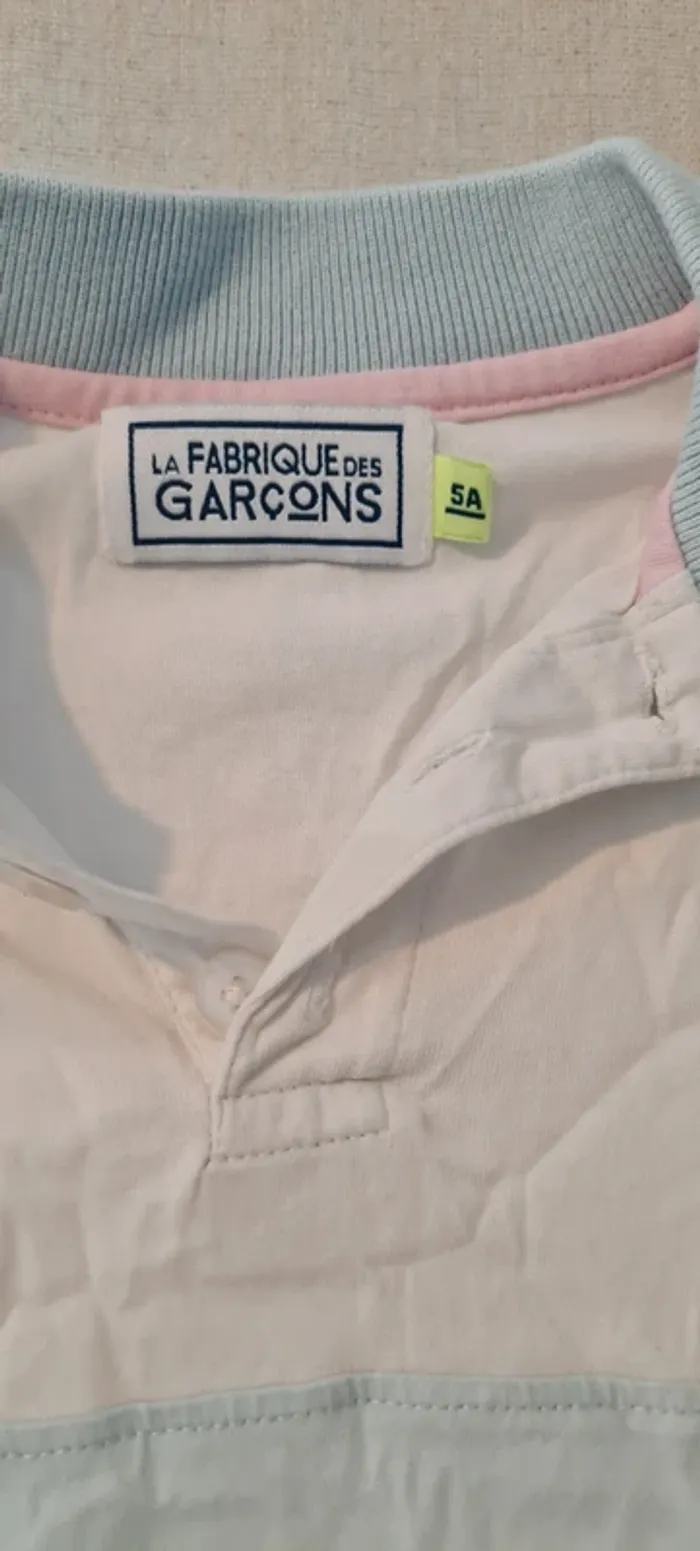 Polo blanc, bleu clair, rose clair Marque La Fabrique des Garçons Taille 5 ans Très bon état Maison non fumeur D'autres articles enfants à petits prix dans le dressing 😉