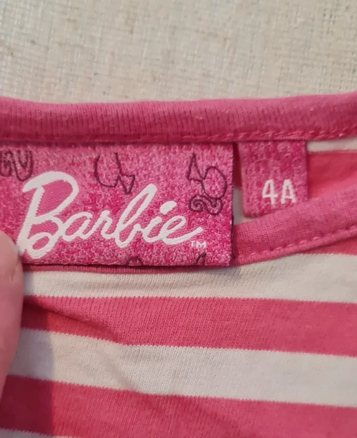Débardeur Barbie rose et blanc Marque Barbie Taille 4 ans Très bon état Maison non fumeur D'autres articles enfants à petits prix dans le dressing 😉