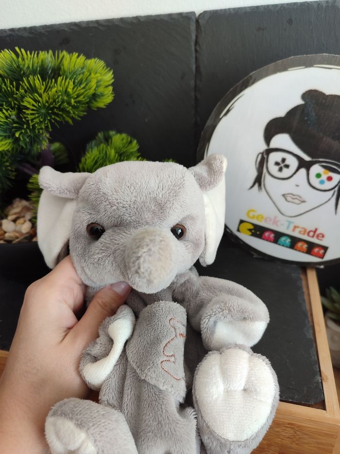 remise en main propre possible : Vertou (44) Référence : DD003258 #geektradehistoiredours Bel état Une tâches sur la trompe je pense qu elle partira au lavage Le logo en arrière plan fait 20 cm de diamètre Afin de ne pas abîmer les doudous et de laisser le choix dans l'utilisation de la lessive les peluches ne sont pas lavées avant envoi Description complément : Petit nettoyage à prévoir Vous achetez ce que vous voyez les photos font entièrement partie de la description Transport : Les frais de transport comprennent les frais du transporteur ainsi que l'emballage pour protéger au mieux votre achat. Chaque achat est envoyé en format colis avec numéro de suivi Le poids du colis est de 500g finit (je ne peux pas faire moins) il peut donc y avoir plusieurs objets dans le carton si vous le souhaitez (contactez moi afinde grouper les frais de port) Référencement : #geektradedoudou #peluche #plush  #doudou #enfant #bebe #knuffel #comforter #felpa #Plüsch #doudou #comforter #schnuffeltuch #kuscheltuch #knuffeldoekje #mantita #naninha #copertina #peluche #plush #stuffedanimal #kuscheltier #knuffel #bichinhodepelúcia #nostalgie #nostalgia #vintage