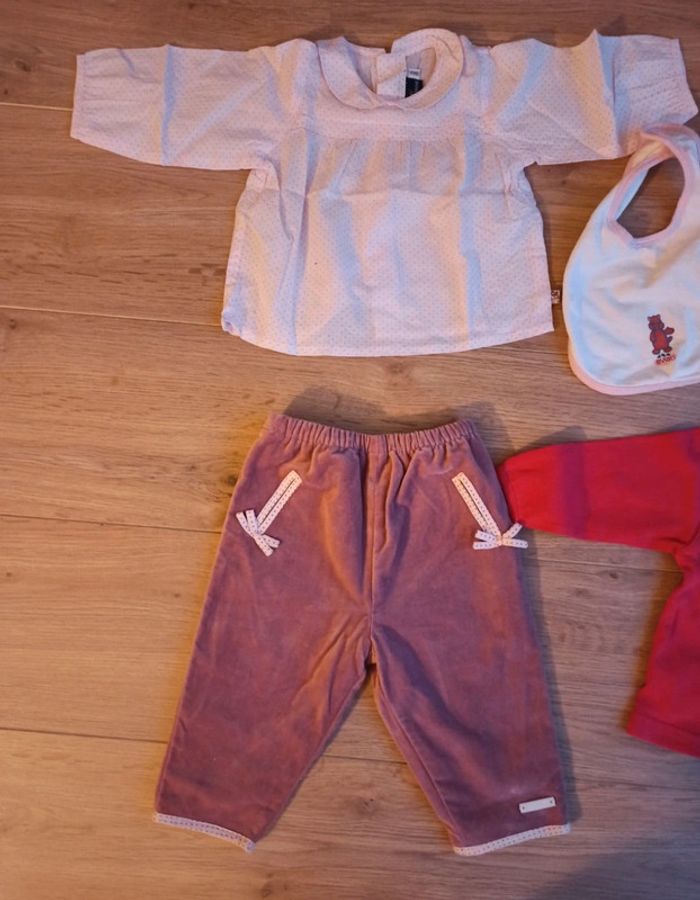 2 tenues bébé de 9 mois plus un Polo rouge plus 3 bavoirs