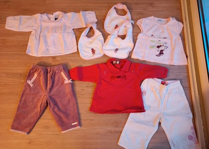 2 tenues bébé de 9 mois plus un Polo rouge plus 3 bavoirs - photo numéro 1