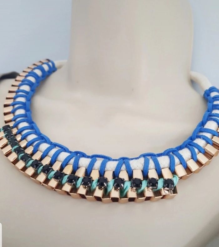 Article neuf sans étiquette Sublime collier ras de cou de la marque Nali. Livraison soignée et réduction sur les lots 📦 #naesahbijoux Bijoux Fantaisie bijou vintage grosses mailles doré ajustable multicolore noir bleu blanc mélange acier métal et tissu élégant élégance glamour classe femmes outfit adolescente ados mode fashion fashionista accessoire accessoires strass