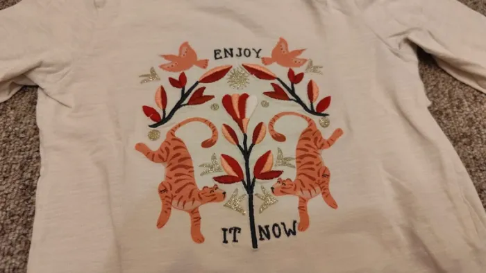 Tape à l'oeil, manches longues. Plutôt crème que blanc. Très bon état