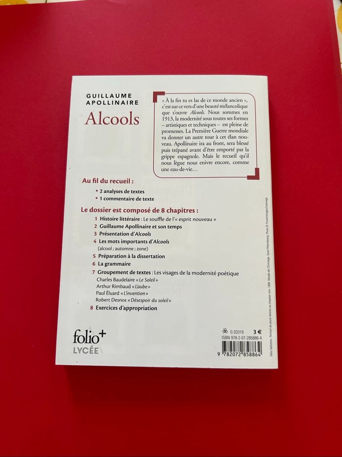 Je vends ce livre en bon très état Titre : Alcools : bac Auteur : Guillaume Apollinaire, Sophie-Aude Picon Éditeur : Gallimard Genre : Parascolaire Thème : Enseignement secondaire, Littérature, Textes et études sur les textes Format : Poche 214 pages Hauteur : 18 cm Largeur : 13 cm Epaisseur : 1 cm L'ivresse poétique Alcools plutôt qu'Eau-de-vie , ce titre au pluriel programmatique propose une exploration sensorielle du monde. Le poète est alors dans un état d'ébriété métaphorique et euphorique qui traduit la soif d'embrasser le monde dans son ensemble. C'est le versant dionysiaque de la poésie d'Apollinaire qui accumule les éléments du réel dans une exaltation vitale des pouvoirs du poête. La mélancolie féconde « Je suis soumis au Chef du Signe de l'Automne. » L'automne est la saison mentale du poète, ses thèmes en sont les amours malheureuses ou maudites, comme dans « La Chanson du Mal-Aimé ». Apollinaire est hanté par le passé, par les formes poétiques d'antan (sonnet, quintil, chanson...) qu'il utilise, fait varier, transforme pour en faire une matière nouvelle et affirmer la toute-puissance du verbe poétique. Lyrisme Registre littéraire, le lyrisme est l'expression du moi du poète. Le mot vient de la lyre, instrument sur lequel Orphée s'accompagnait pour chanter son amour pour Eurydice. …. Envoi rapide et soigné