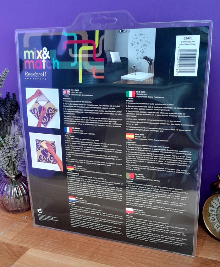 42 stickers muraux feuillage noir et argent