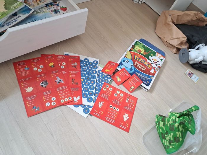 Comme le montre les photos, le livre a très PEU servi ( juste 2 questions de cochées) et manque les plaches de stickers.
