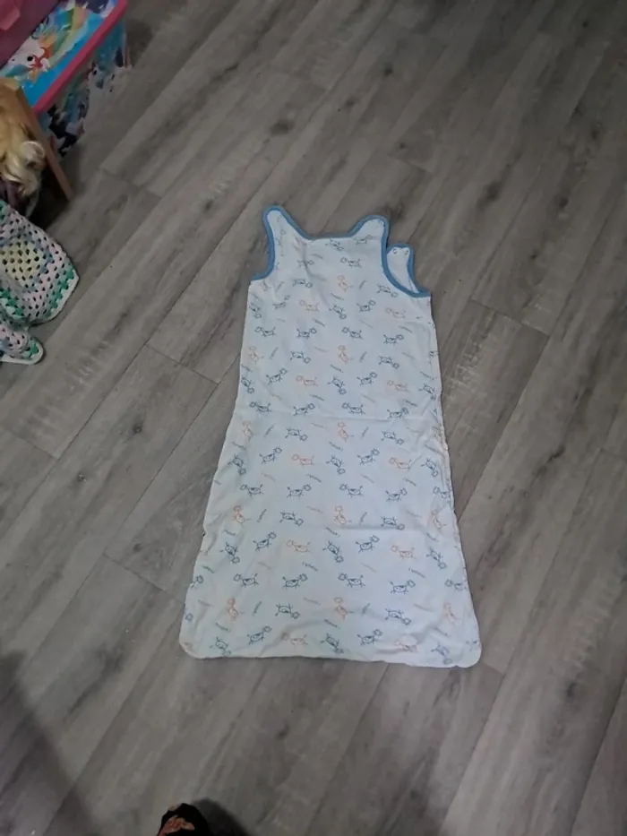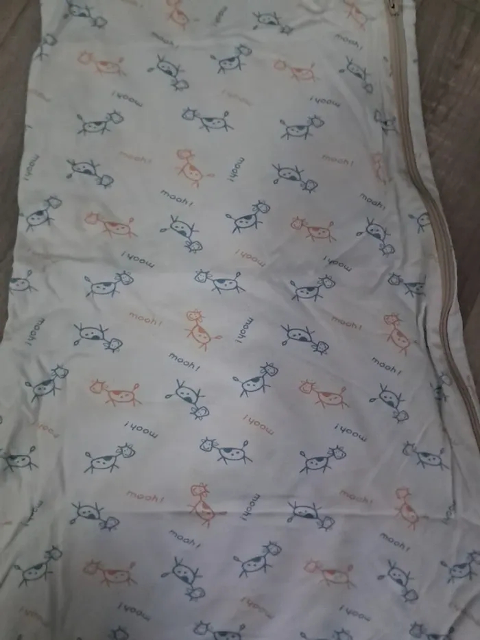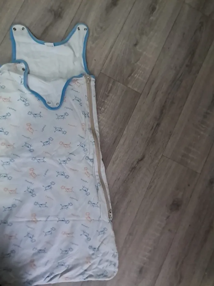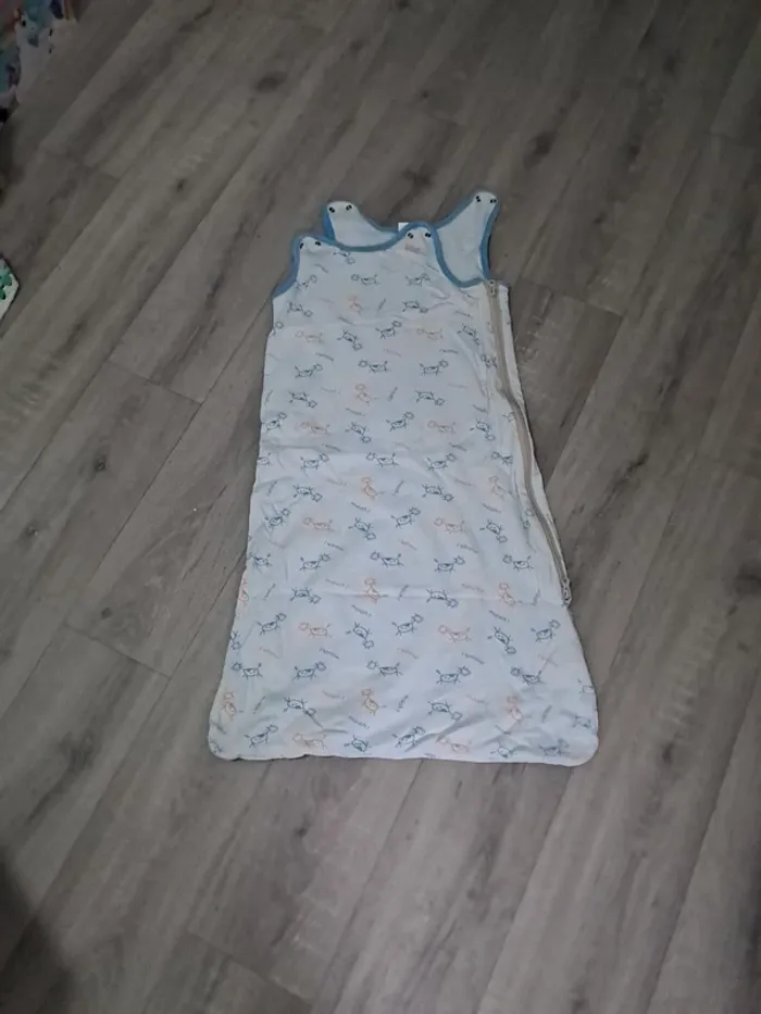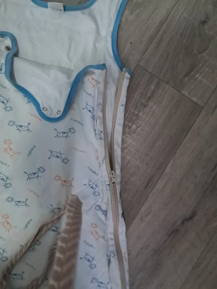 Bcp utilise. Pas de tache, ni trou, fermeture fonctionnelle. Noté 110 cm mais je la trouve juste pour cette taille, je dirai convient jusqu a du 3/4 ans.