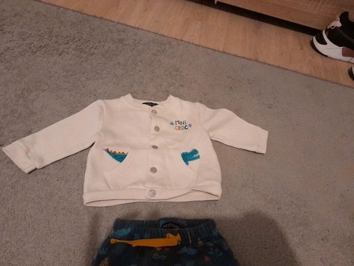 Tres bon état. La veste est creme il y a une mini tache dans la couture dans la manche mais qui ne ressort pas en photo donc vraiment très peu visible. Jogging en parfait état. 62 cm #3moisgarconcali91300