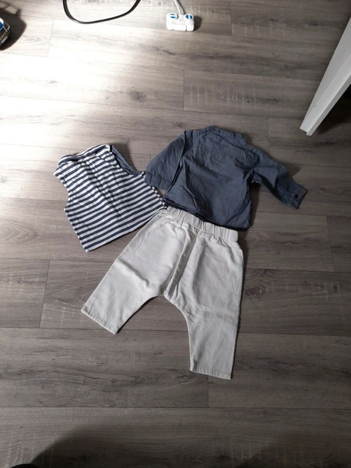 Peu porté. Sarouel blanc avec taille élastique. Chemise col Mao et gilet assorti. Le tout de kiabo en 6 mois, 63 69 cm #6moisgarconcali91300