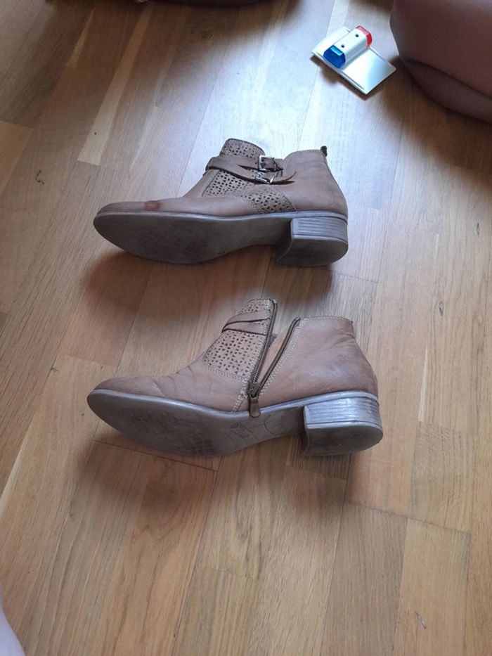 Etat satisfaisant. Trace de la pliure du pied. Qq petites taches visibles sur les dernières photos. Trace blanches sur la semelle intérieure car j avais mis une semelle adhésive par dessus. Pas de trou. #40chaussuresfemmecali91300