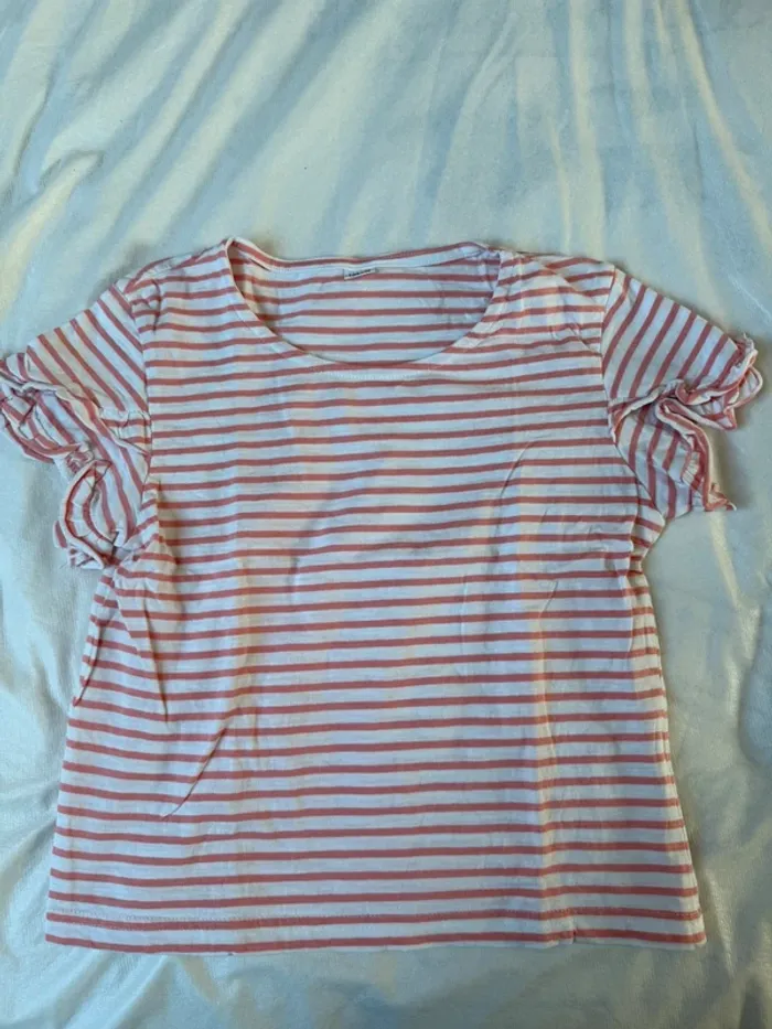 TEE shirt rayé manches à volants 134-140 10 ans Jamais porté #mariehenri62_fille10ans