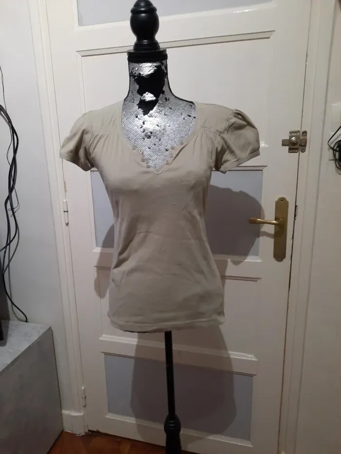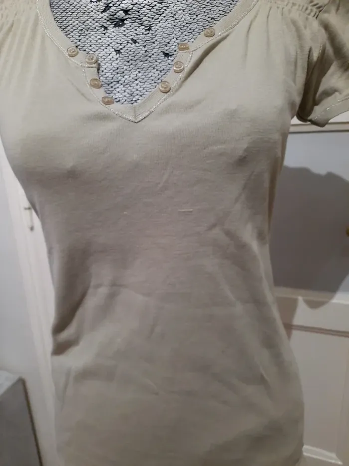 Tee-shirt manche courte taille 3=40 y a une petite griffure sur le devant et 2/3 petite bouloches autrement en très bonne état N hésitez pas à faire un tour dans mon dressing et achetez en lot vous ferez des économies sur les fdp 😇 #moutsimoumounehabitfemmetaille40