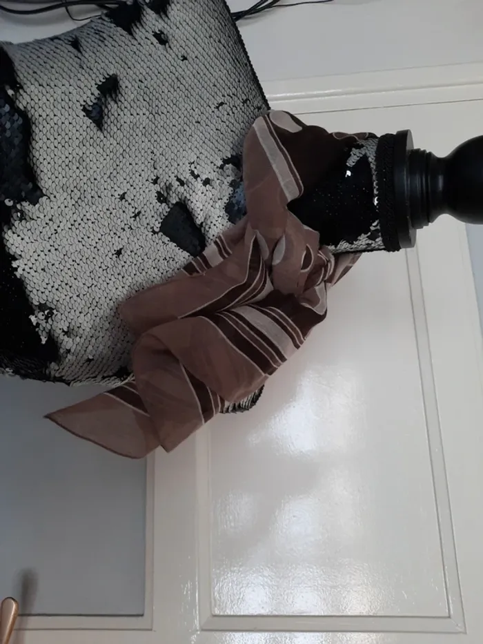 Foulard 87x87 y a juste une petite griffure autrement en très bonne état N hésitez pas à faire un tour dans mon dressing et achetez en lot vous ferez des économies sur les fdp 😇 #moutsimoumounebazardmaison