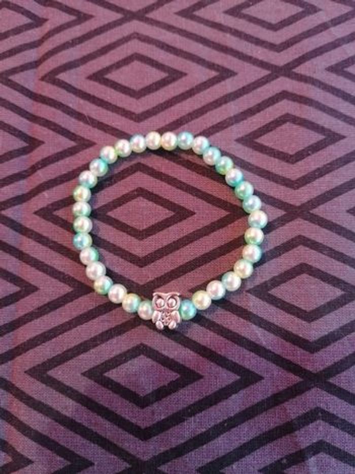 Bracelet hibou en perles multicolores (vert, jaune, blanc) neuf
