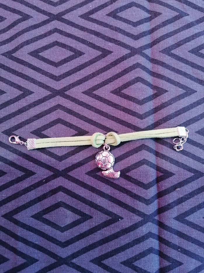 Bracelet en suédine verte avec un pendentif représentant un ballon de foot et un crampon, neuf D'autres couleurs disponibles