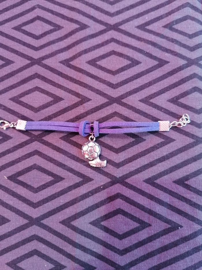 Bracelet en suédine violet avec un pendentif représentant un ballon de foot et un crampon, neuf D'autres couleurs disponibles