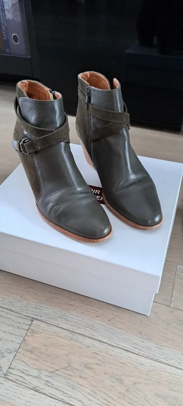 Bottines comptoir des cotonniers Vert kaki Pointure 39 Très bon état Très peu portées Très élégantes aussi bien avec un jean, un pantalon habillé, une robe ou une jupe.