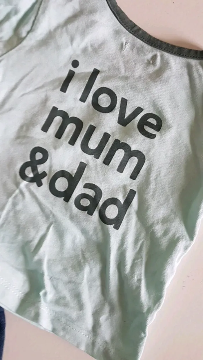 Parfait etat Jolie ensemble haut manche longue "I Love My Dad & Mum" et pantalon type jean 🦁 Marque Kiabi 🔝🔝 Taille 3 mois #3moisgarcon #ensemble3mois #manchelongue