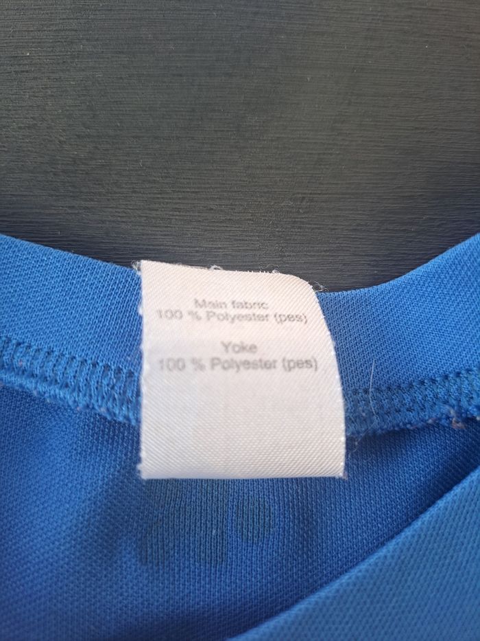 Porté. Taille: 8 ans. Motif sur la poitrine en très bonne état. Motif sur le bas qui s'efface. Motif sur le dos en très bonne état. Pas de trou. Légers tâches sur le devant. Légères acros.