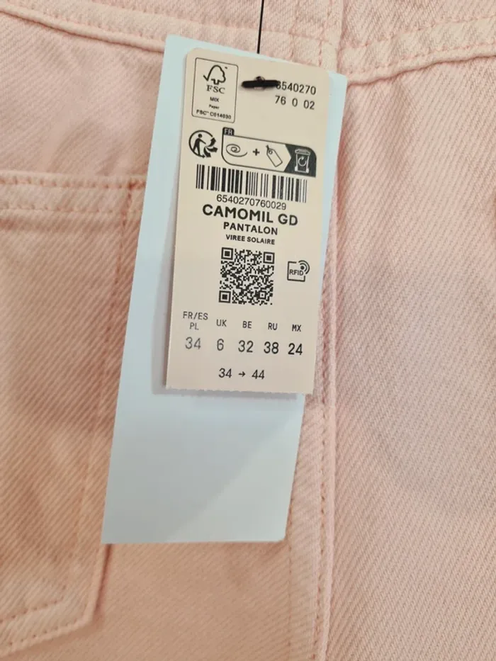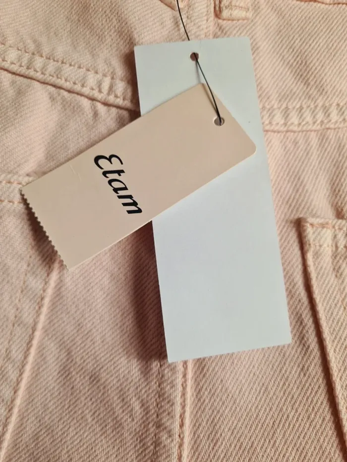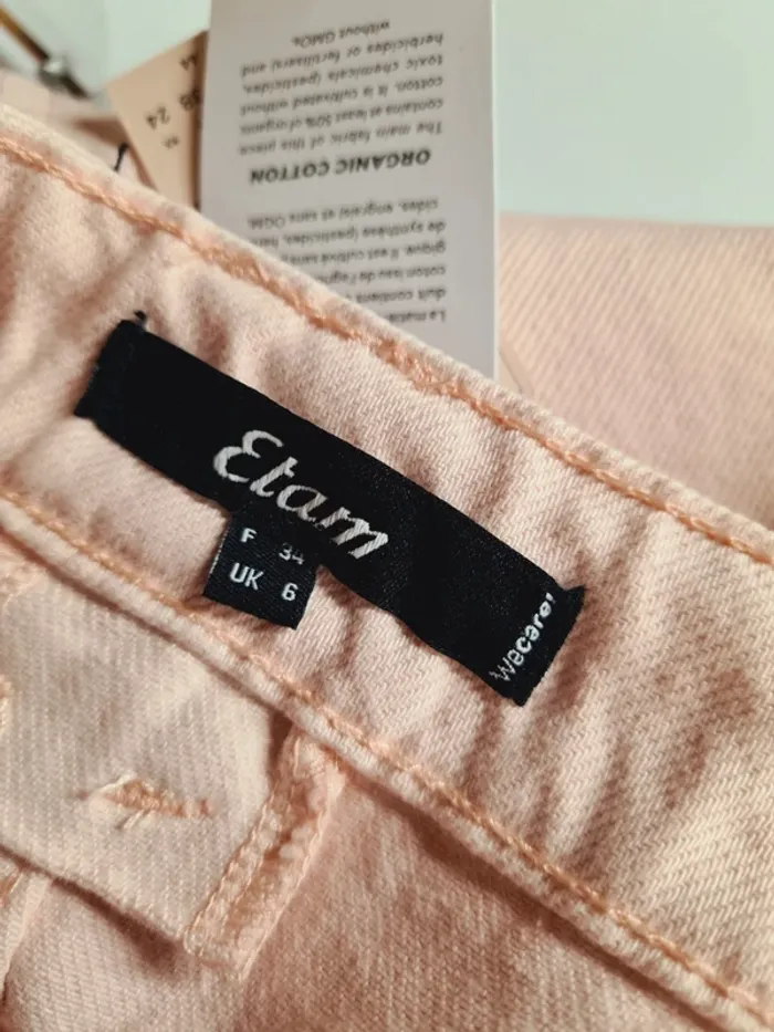 Fr34 Tour de taille 68 cms Hauteur 102 Entrejambe 74 Taille haute jambes large bas effiloché Rose clair Neuf #34_xs_tresors02