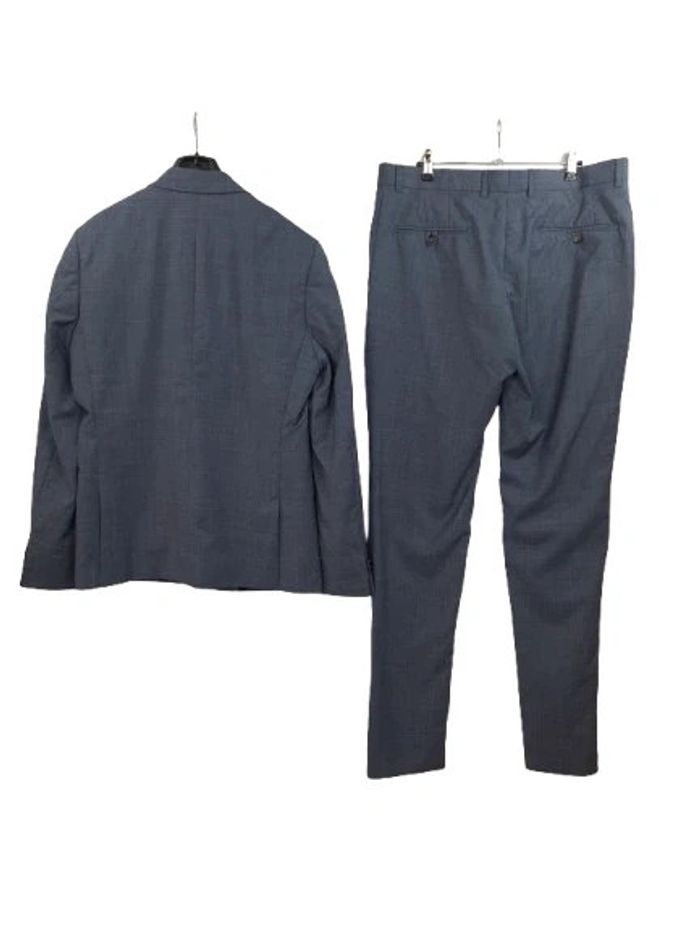 Veste taille 50 Épaule à Épaule 44 cms Largeur sous aisselles 52 Hauteur 80 Pantalon 44 taille large Tour de taille 92 cms Hauteur 116 Entrejambe 86 Bleu 100% Laine vierge Bleu