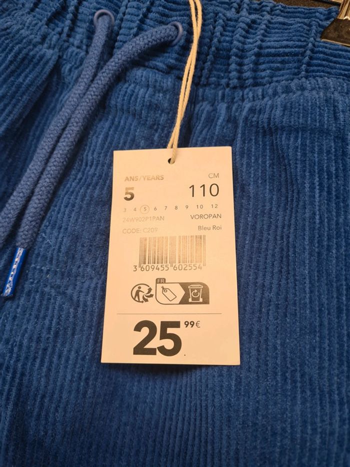5 ans Velours bleu Hauteur 60 cms Entrejambe 40 100% Coton Garçon Neuf avec étiquette