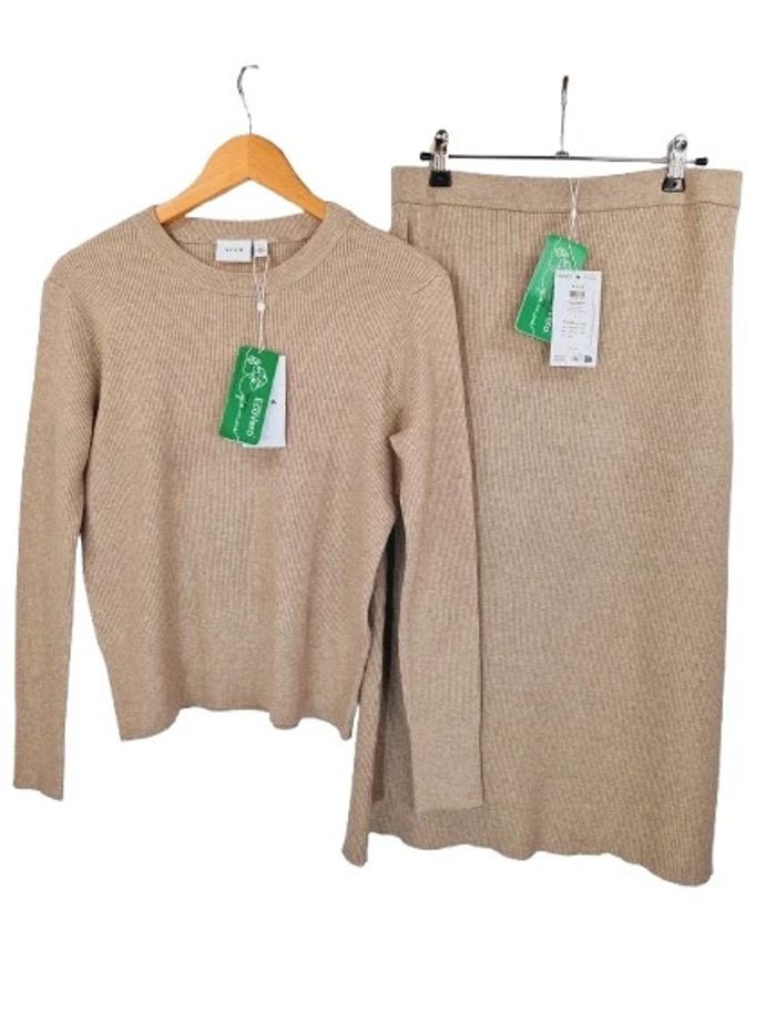 L Pull Épaule à Épaule 40 cms Largeur sous aisselles 50 Hauteur 56. Jupe Taille élastiquée Tour de taille 80 Hauteur 76 Beige Viscose/ Polyamide/ Polyester Neuf avec étiquettes #38_m_tresors02 (dressing par taille)