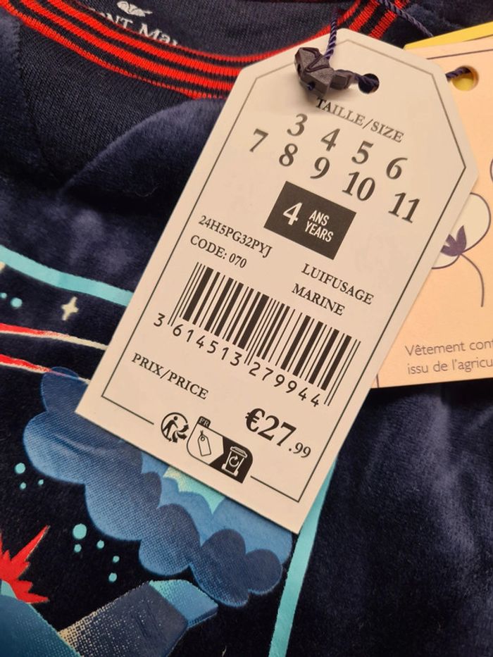 4 ans Velours Marine Coton bio / Polyester Neuf avec ses étiquettes