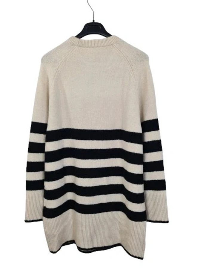 L Oversize Largeur sous aisselles 60 cms Hauteur 86 Blanc cassé / bleu Polyester/ laine / acrylique/ elastan Neuf avec son étiquette