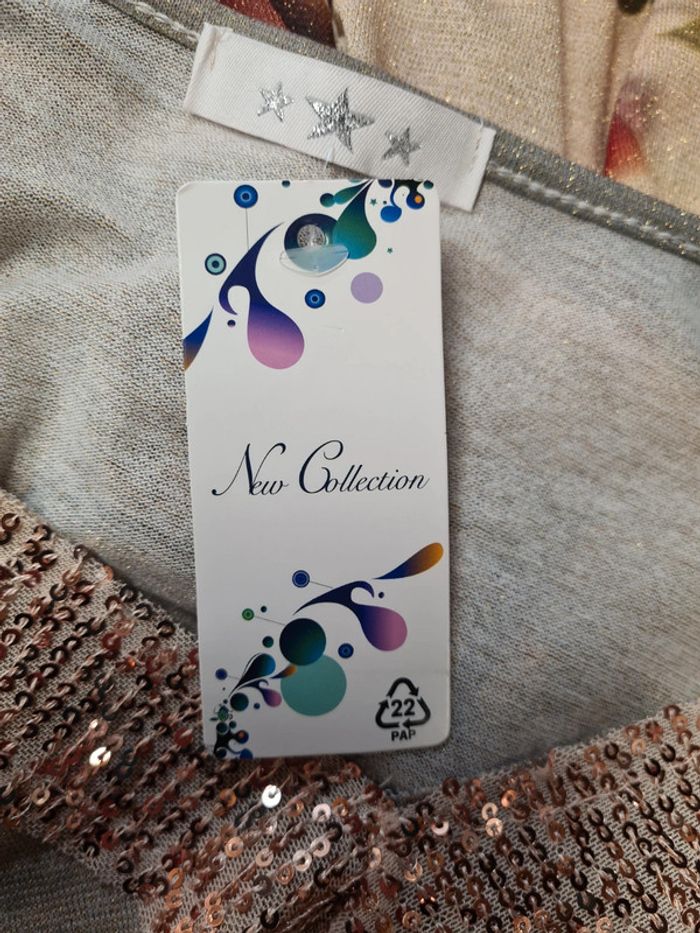 Taille unique Largeur sous aisselles 70 cms Hauteur 72 Polyester/ sequins Beige / doré Neuf avec son étiquette