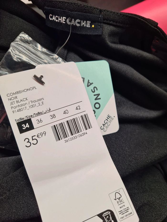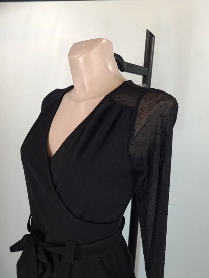 Taille 34 Hauteur 77 cms Entrejambe 12 Manches voile plumetis Polyester/ elastan Noir Neuve