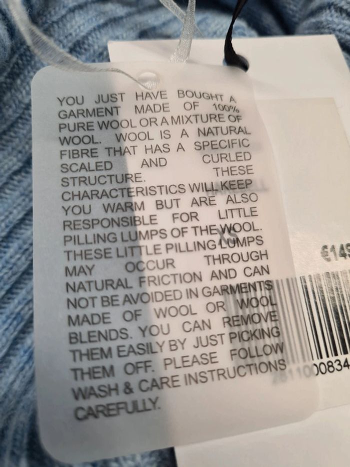 Xs Modèle harebell Largeur sous aisselles 48 cms Hauteur 65 Laine/ Polyamide Bleu clair