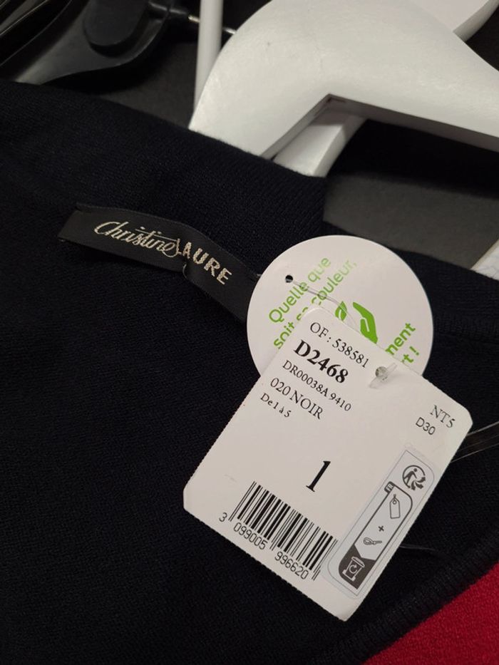 Taille 1 Épaule à Épaule 40 cms Largeur sous aisselles 46 Hauteur 102 Manches 60 Noir/ multicolore Viscose/ Polyamide/ Polyester