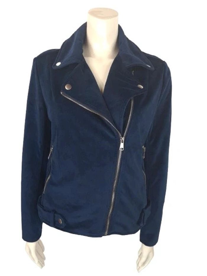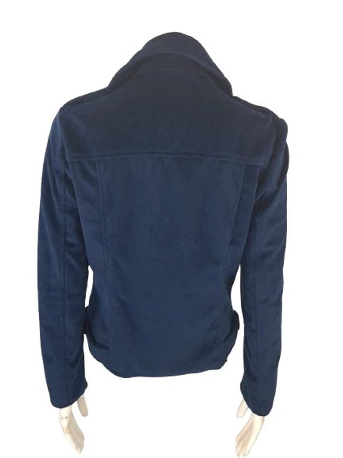 38 Épaule à Épaule 38 cms Largeur sous aisselles 48 Hauteur 56 Effet suédine Marine Très bon état